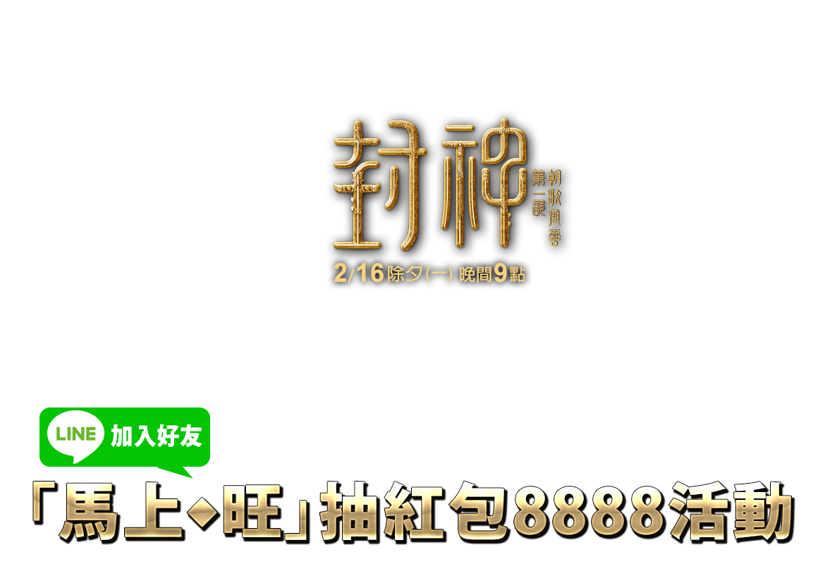 鎖定緯來電影台小年夜至大年初二晚間9點春節電影院首播電影,直接點連結加入緯來電影台官方Line 好友會員,拍下指定畫面上傳至Line聊天室,就有機會得發財紅包8888、旺運金飾、開運小物以及多樣精美好禮,馬年行大運,馬到成功、旺運同行,幸福一路奔騰!!